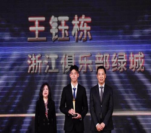 王钰栋首先感谢了中足联将“最佳新人”颁给自己:“非常开心,这让我有更多动力去角逐更多奖项。候选名单有许多有实力的球员,实力都在我之上,我这次得奖是运气好。”