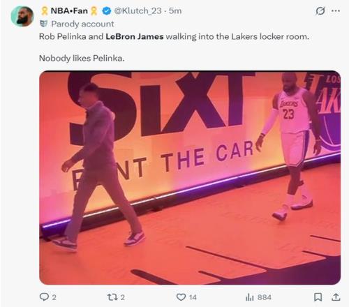 湖媒晒出詹姆斯与佩林卡一同走进球队更衣室并评论:根本没有人会喜欢佩林卡。