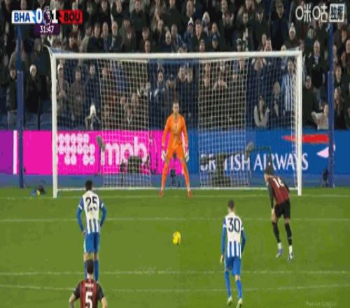第33分钟,阿德利倒地,主裁改判点球,塔韦尼耶命中,伯恩茅斯1-0